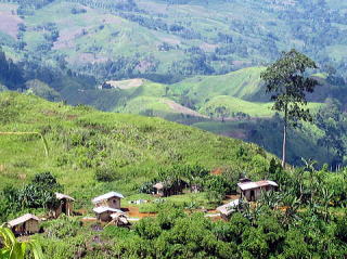 目的地に向かう! 川を渡り、 丘を越えていった高地に 原住民たちの住む集落がある。 ![]() この地域もほとんどの土地が、