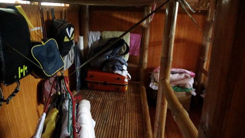 ②ふる里の家では竹の床のうえに