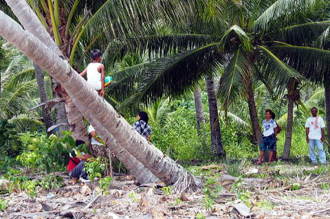 ④木に登ってヤシの実とってあげる!