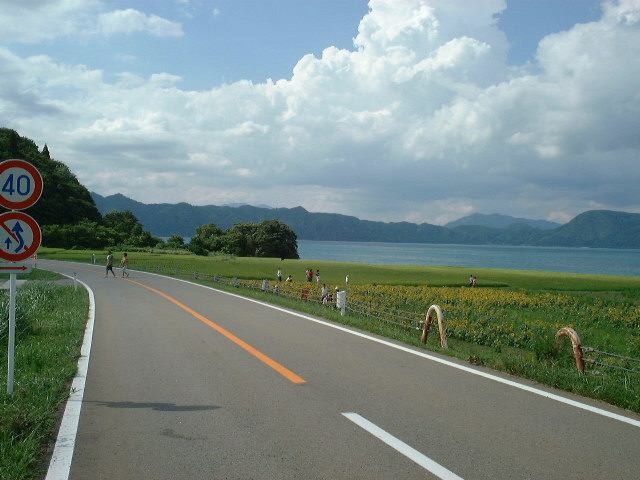 国道106号線から46号線へ入り 少し行くと、田沢湖が見えてきた。 日本で最も深い湖の田沢湖は 水深が174mもあり、厳しい冬でも 決して凍ることはない。 |