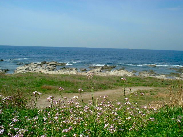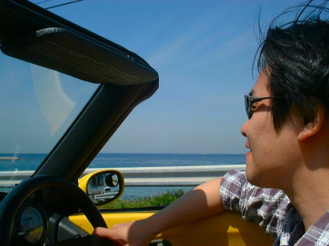 海沿いの道を爽快に駆け抜けます。 (加納ちゃん、気持ち良さそ〜ですね) 天気もすごく良くって、海が真っ青に 輝いています。 |