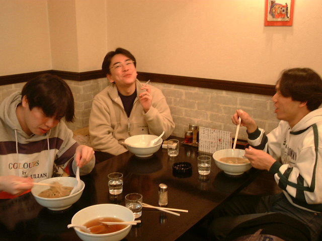 男どもはそろって、湯畑の横のラーメン屋