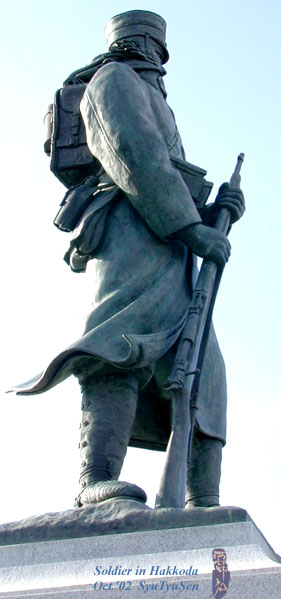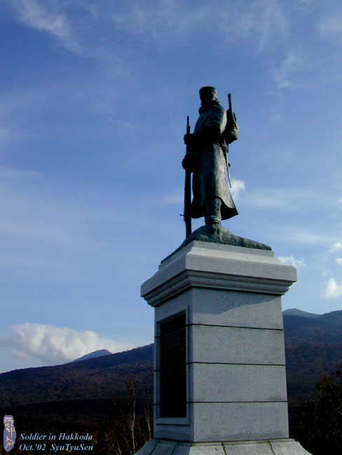八甲田雪中行軍遭難記念像 The statue of a soldier met with accident during the march in heavy snow at Hakkoda.
