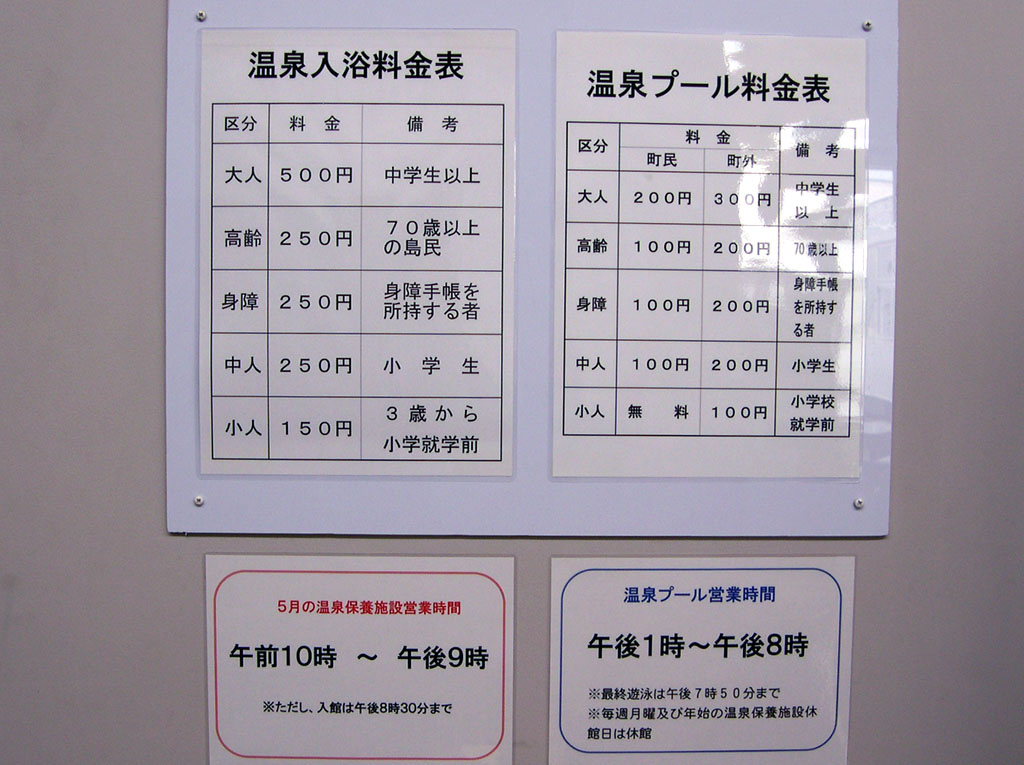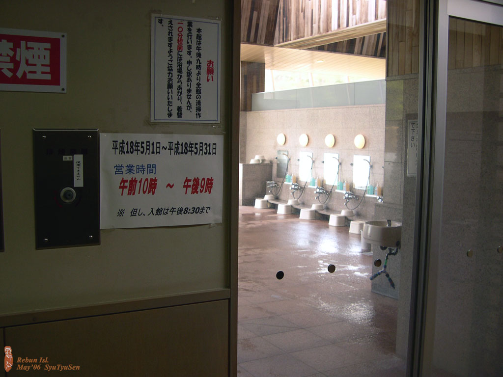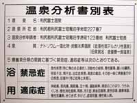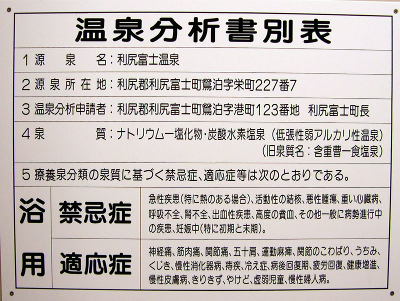 | 利尻富士温泉・浴室入口 | 利尻富士温泉・温泉プール | 利尻富士温泉・温泉分析書 | 利尻富士温泉・注意書 | 利尻富士温泉・料金表 |